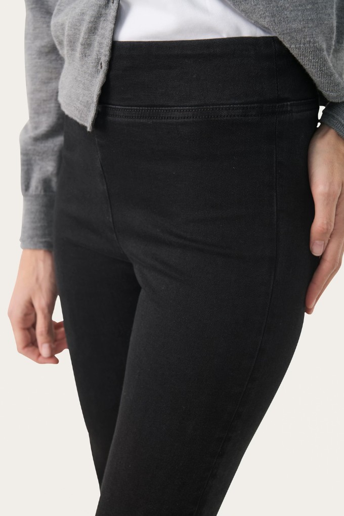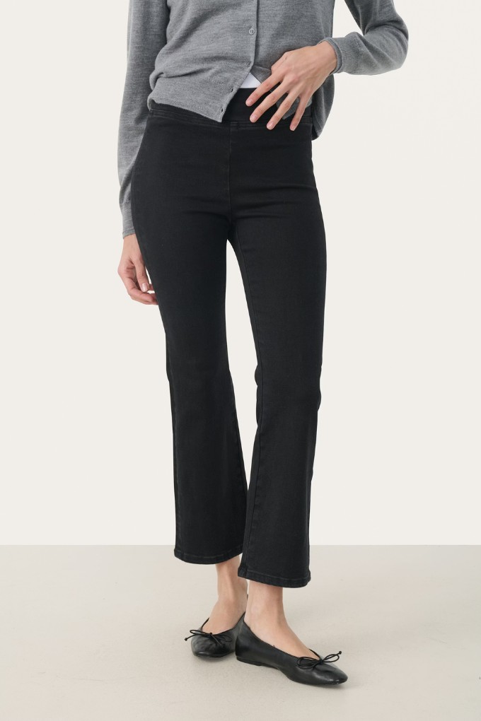 Ce jean présente une coupe 7/8 flatteuse et une silhouette légèrement évasée qui allonge les jambes.
