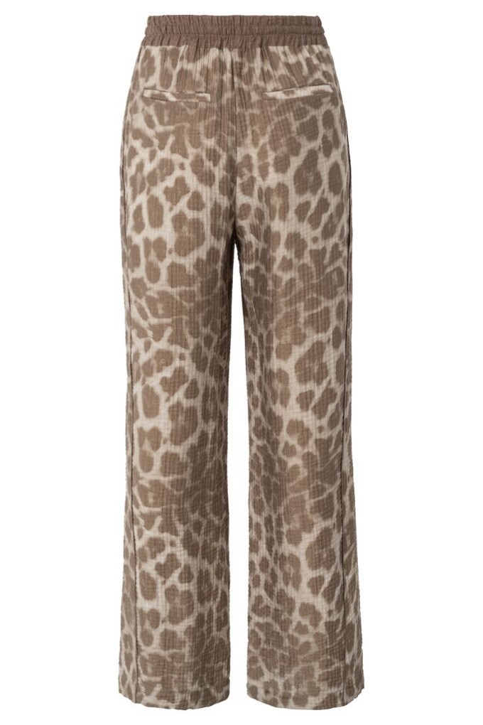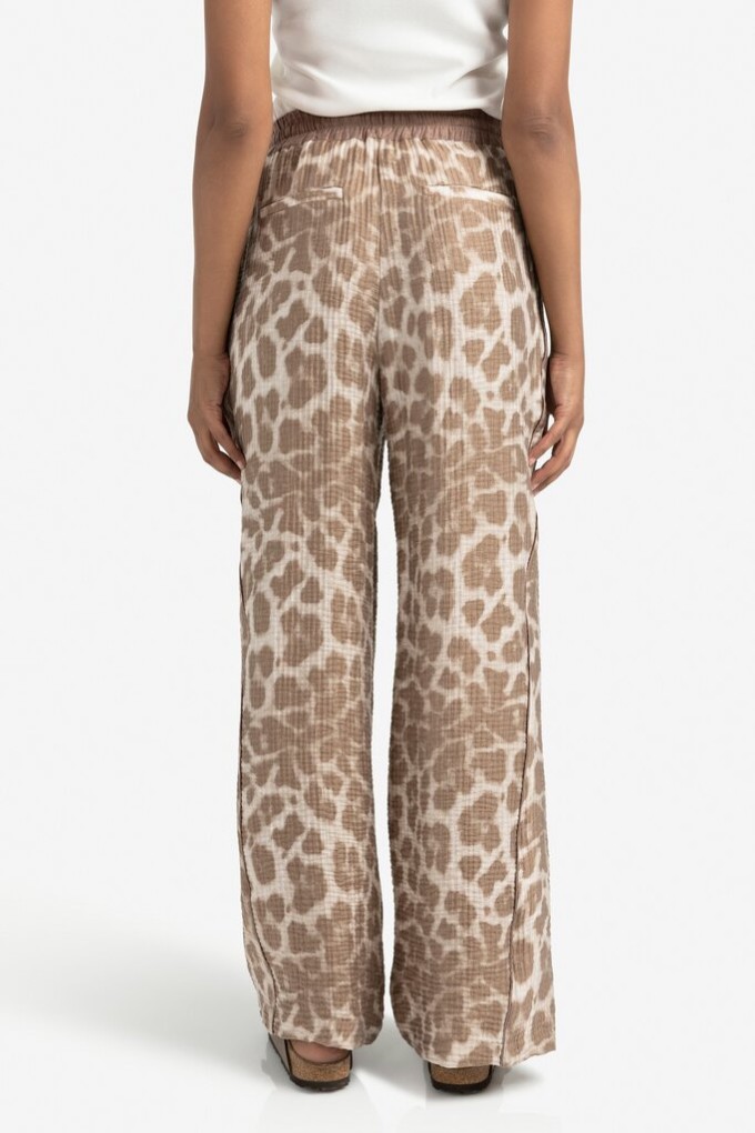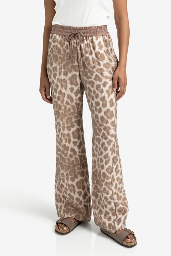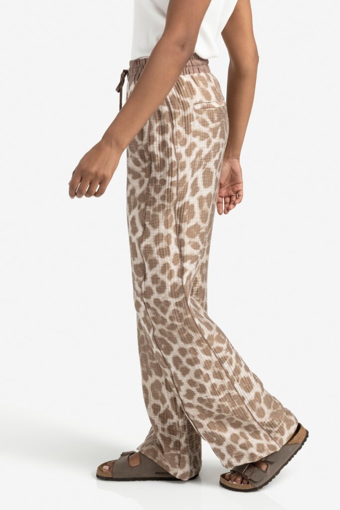 Ce pantalon fluide à imprimé léopard a une coupe ample. Il possède une taille élastiquée avec cordon de serrage, des jambes droites et larges ainsi que des poches passepoilées à l’arrière.