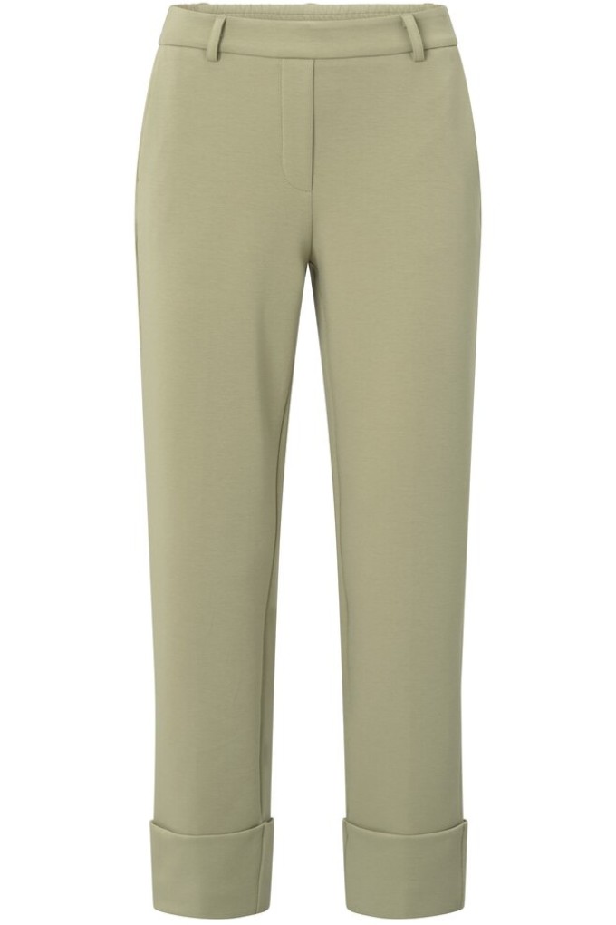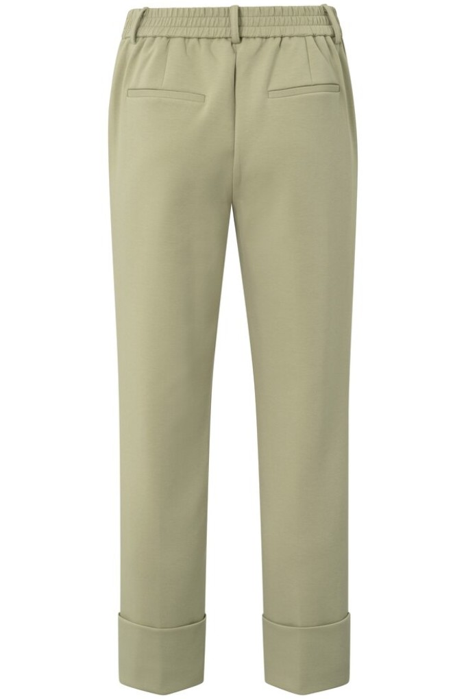 Ce pantalon tailleur en jersey a une taille élastiquée et de grands revers.