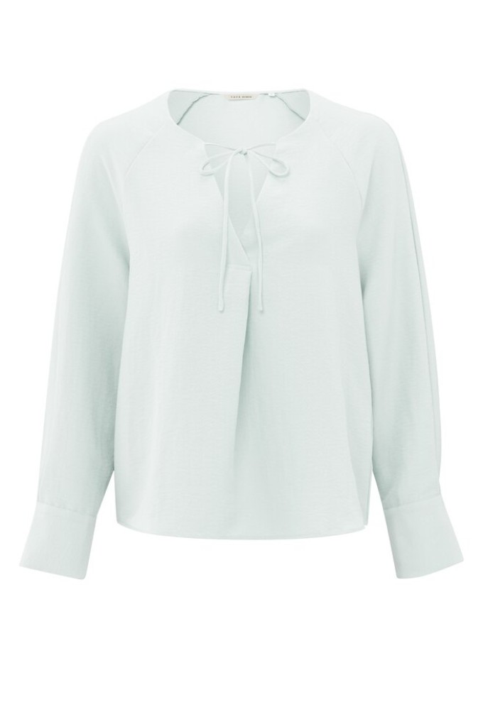 Ce chemisier aéré est fabriqué à partir d’un tissu fluide et présente un élégant décolleté en V.