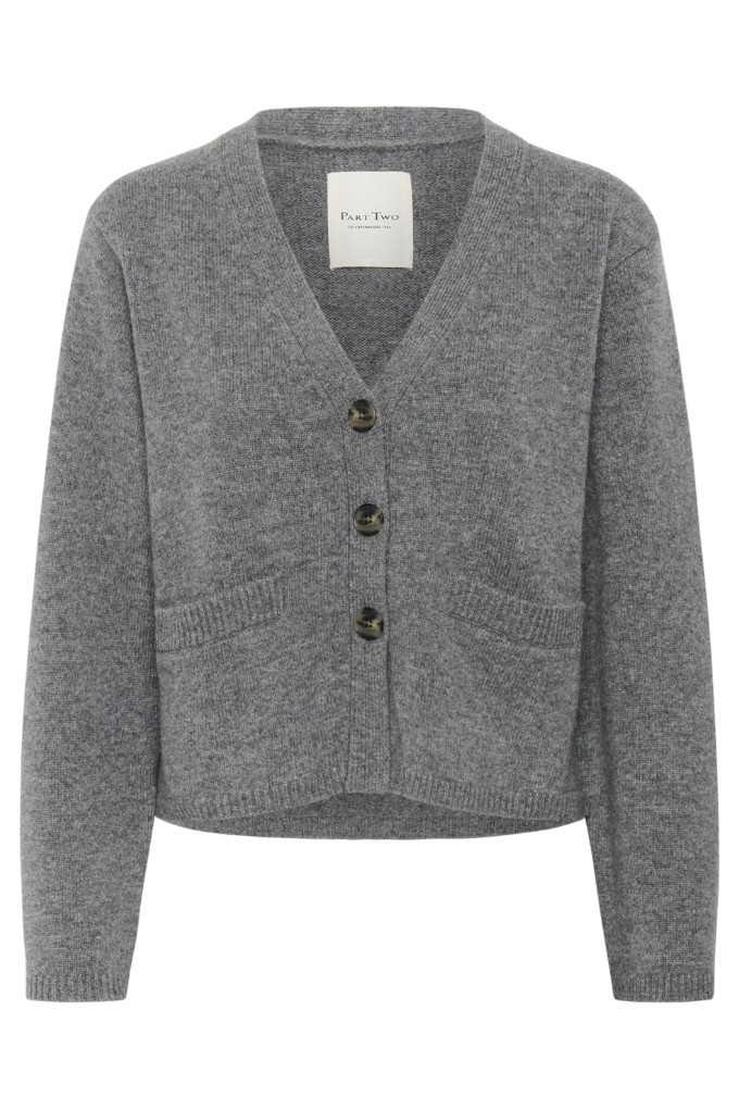 Ce cardigan en tricot a une coupe décontractée et un col en V. Il a une longueur courte et de gros boutons. Ce cardigan possède de petites poches à l’avant.