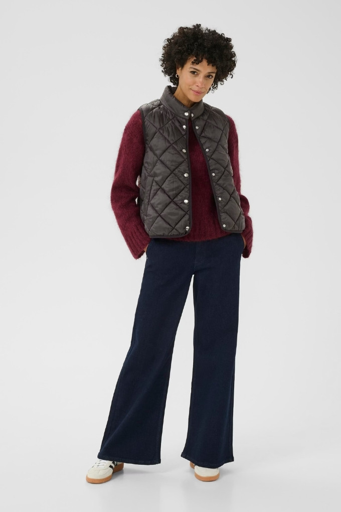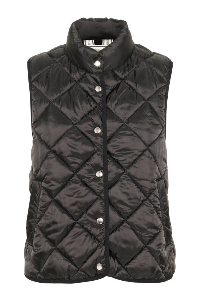 Ce gilet matelassé est idéal pour la mi-saison. Il a un col montant, une fermeture à boutons-pression et deux poches avant. Il se porte facilement sur un pull ou sous un manteau.