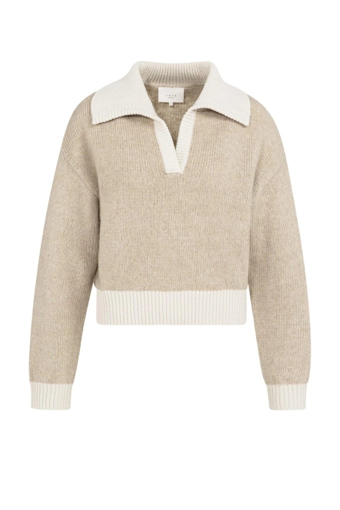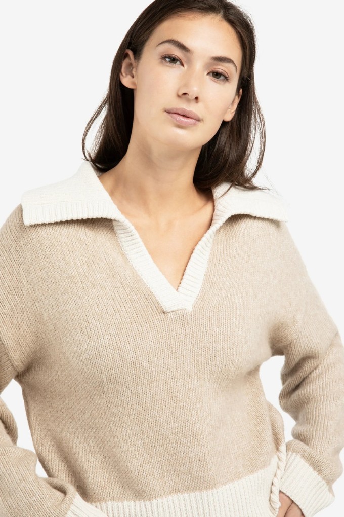 Pull en maille avec col et bordures contrastés