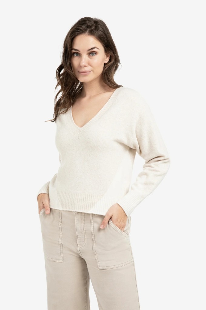 Pull en maille col V avec effet color block