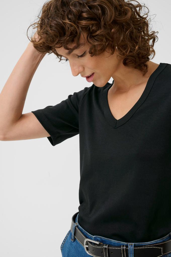 Ce t-shirt possède un col V et une coupe classique. Il se porte facilement avec tout et en toute saison.
