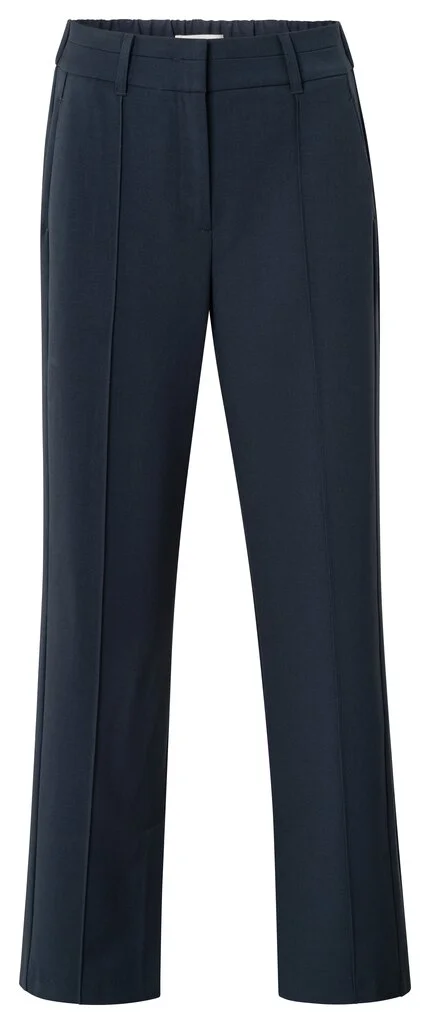 Pantalon tailleur jambes larges avec surpiqures sur l’avant.