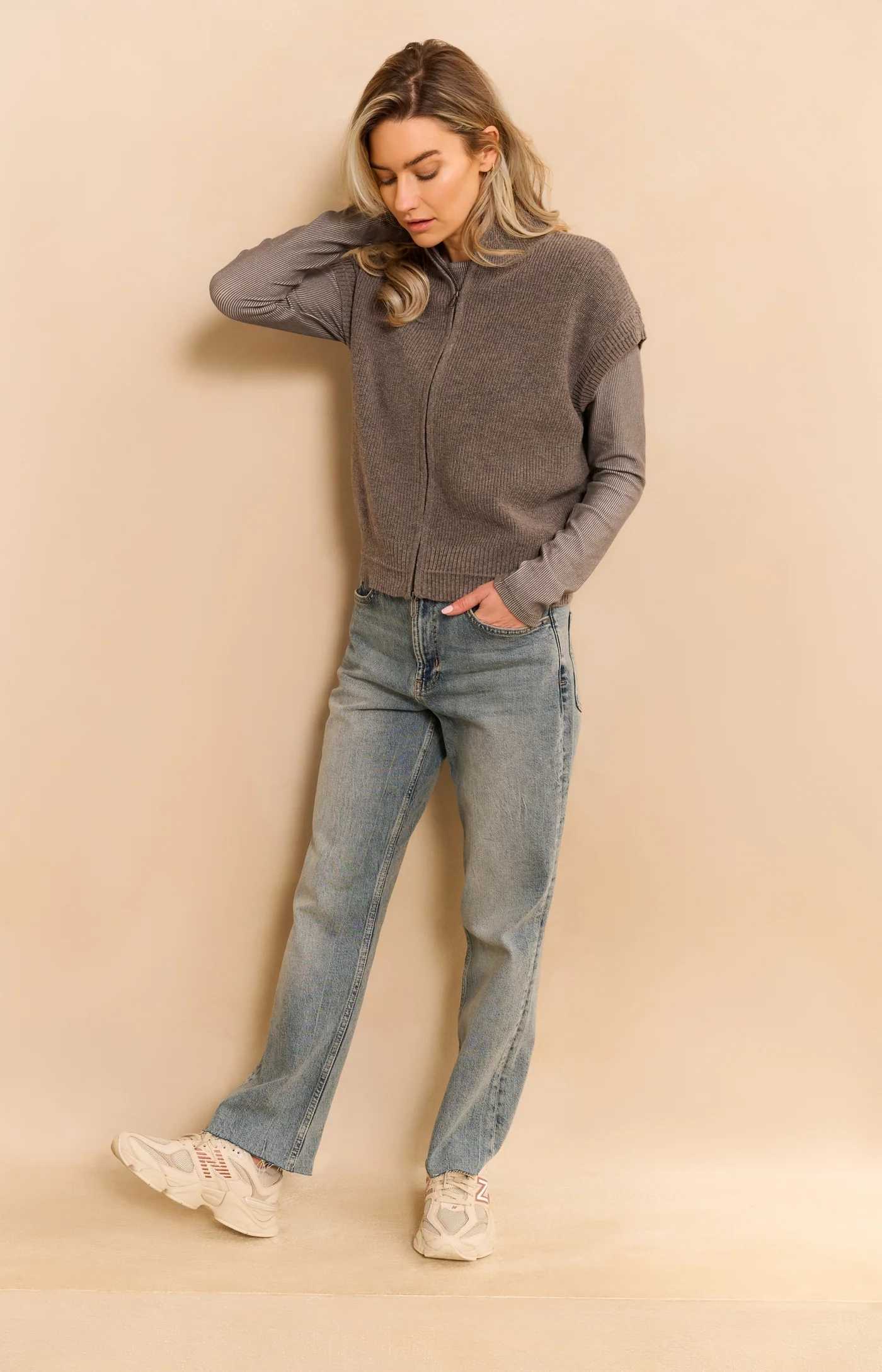 T-shirt manches longues col rond près du corps effet maille tricotée.