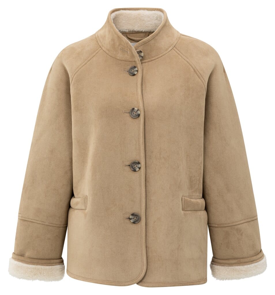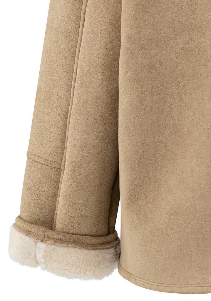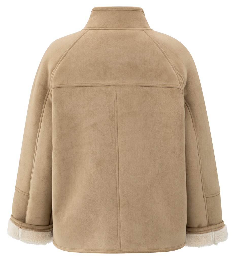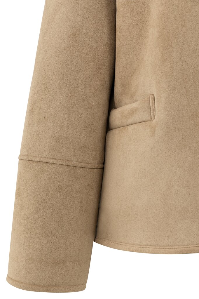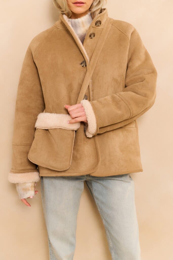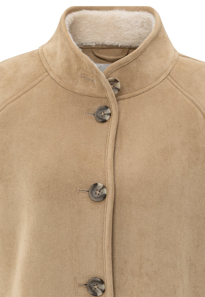 Manteau court doublé fausse fourrure col mao effet suedine.